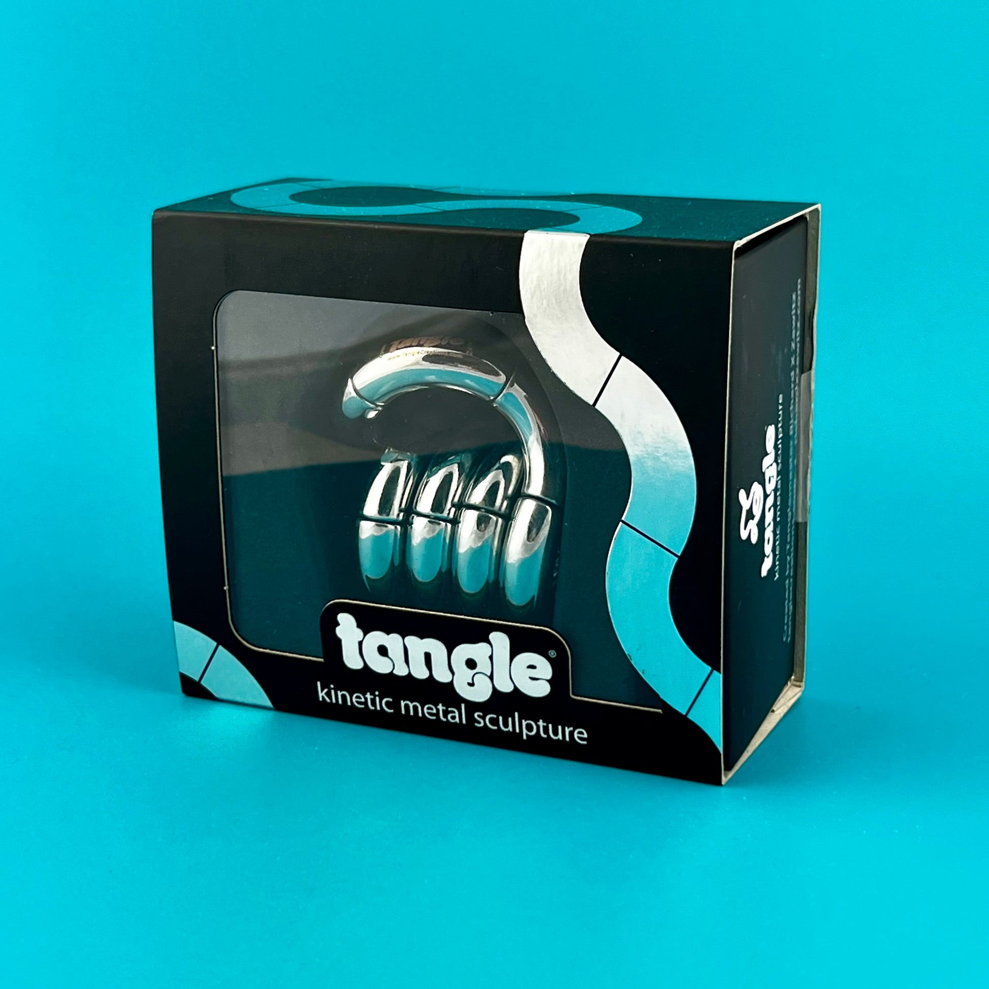 This die-cast metal Tangle Jr. with its modern, metallic finish and sleek design was inspired by the Tibetan Infinite Knot and is truly a work of art. With 18 interconnected pieces, this twisty art toy keeps your hands busy. This minature Tangle sculpture consists of 90 degree angles that are interconnected to create endless curves and a mesmerizing motion whenever you interact with it.