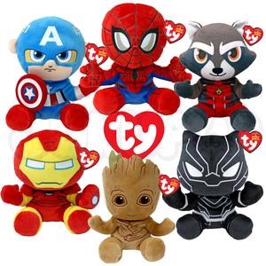 Ty Marvel Beanie Babies Superheroes Plush Soft Toy - Stuffed Toy for Kids - Spiderman, Iron Man, Captain America, The Hulk, The Guardians of the Galaxy Groot, Rocket, Black Panther